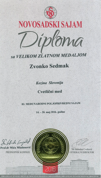 V mnogih letih čebelarstva je Zvonko Sedmak pridobil številne nagrade in priznanja na domačih in mednarodnih tekmovanjih